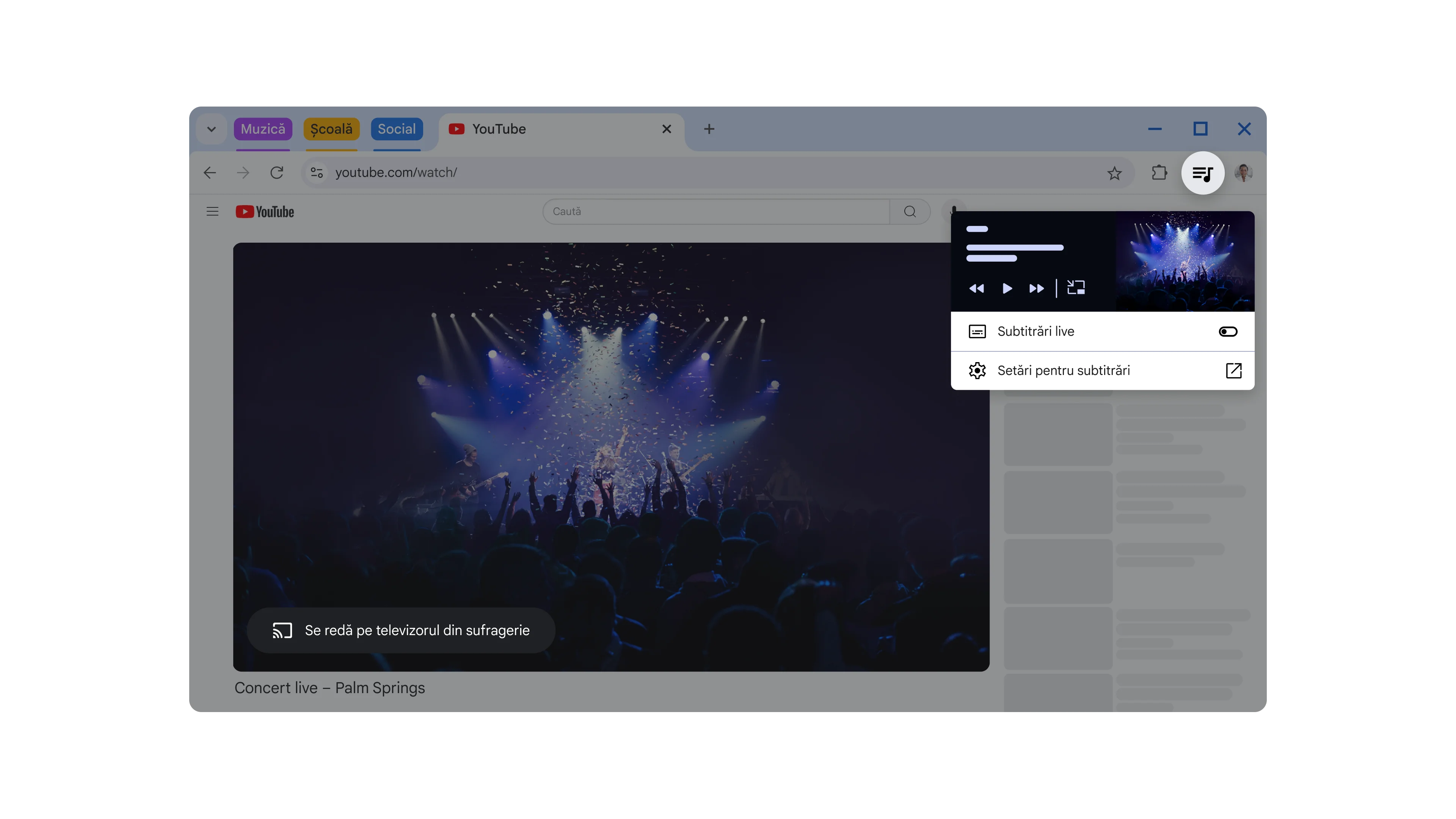 Cu Chrome, poți proiecta conținut de pe computer sau telefon pe televizorul cu Google Cast integrat. Alege să proiectezi întregul ecran sau doar o anumită filă.