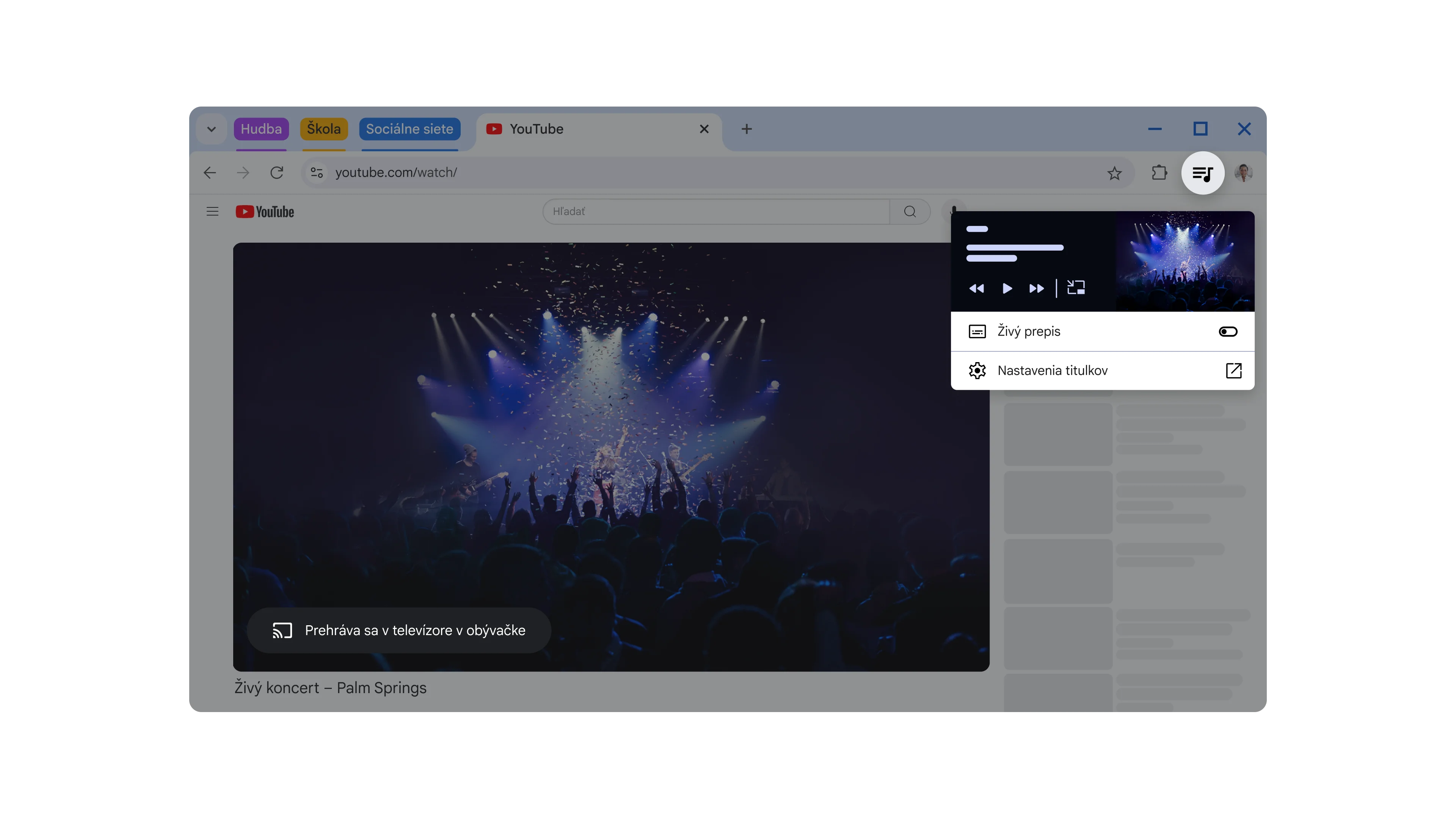 Pomocou Chromu môžete prenášať obsah z počítača alebo telefónu do televízora vďaka integrovanej technológii Google Cast. Vyberte, či chcete prenášať celú obrazovku, alebo iba konkrétnu kartu.
