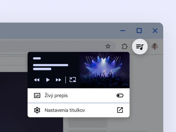 Chrome podporuje čítačky obrazovky aj lupy a ponúka priblíženie na celú stránku, farby s vysokým kontrastom, opisy obrázkov od umelej inteligencie, živé prepisy, prehliadanie pomocou klávesnice a ďalšie funkcie, takže prehliadanie internetu je jednoduchšie ako kedykoľvek predtým a budete ho môcť využívať ešte efektívnejšie.